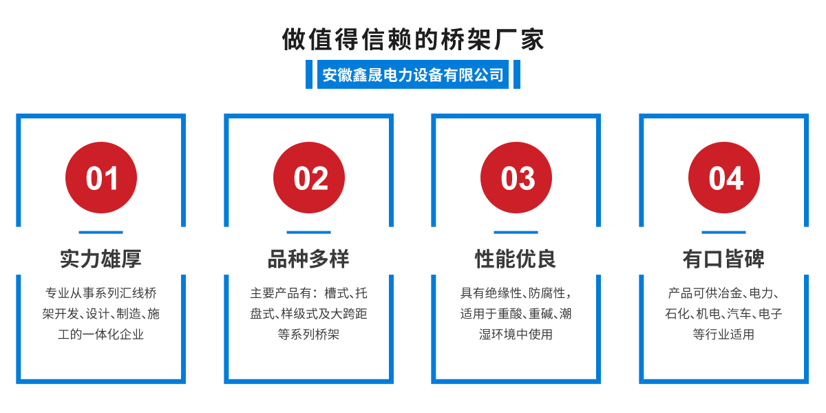 - 安徽鑫晟電力設(shè)備有限公司是專注從事系列匯線橋架開(kāi)發(fā)、設(shè)計(jì)、制造、施工的一體化企業(yè),主要產(chǎn)品有:槽式、托盤式、梯級(jí)式及大跨距等系列橋架。產(chǎn)品選用冷軋或熱軋鋼板井對(duì)...